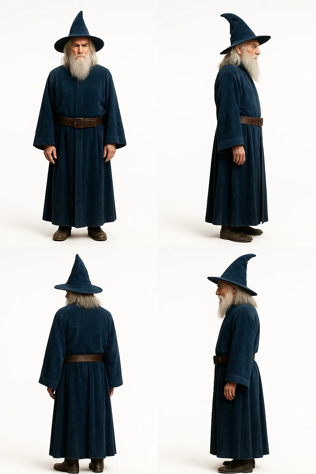 Gere o personagem em fundo neutro e sem detalhes extras. Crie pelo menos estes ângulos:
